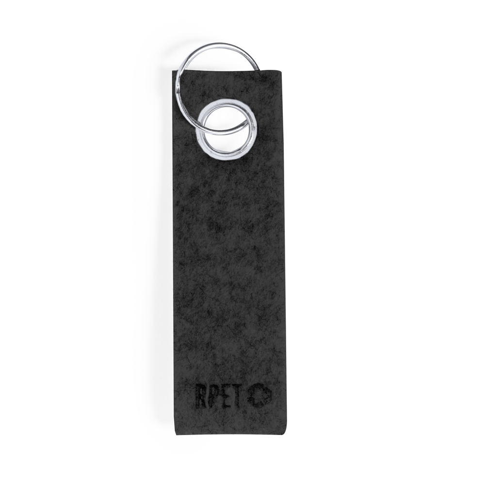 Elegante sleutelhanger met Felt RPET band en verchroomd metalen oogje. Met het kenmerkende van Felt RPET op de band en verchroomde metalen ring.Felt RPET is het resultaat van de combinatie van de recyclingprocessen van plastic materialen samen met de millenniumtechniek van viltproductie, resulterend in een eco-trendmateriaal dat niet alleen van gerecyclede oorsprong is, maar ook recyclebaar wordt.