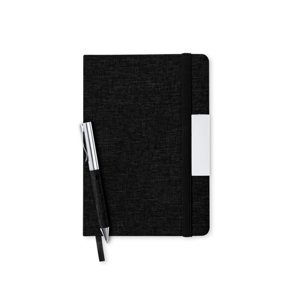 Set van notitieblok en balpen in RPET, gemaakt van gerecycled plastic om hergebruik van plastic...meer