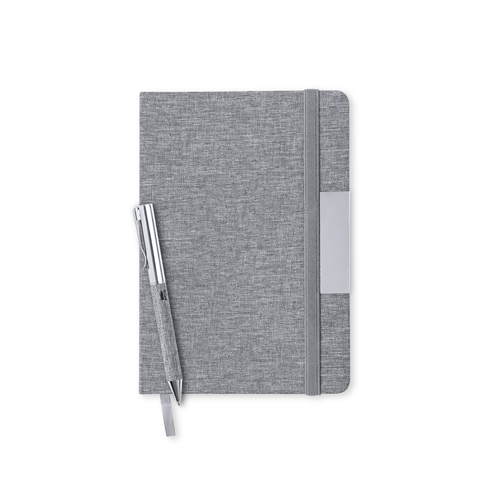 Set van notitieblok en balpen in RPET, gemaakt van gerecycled plastic om hergebruik van plastic...meer