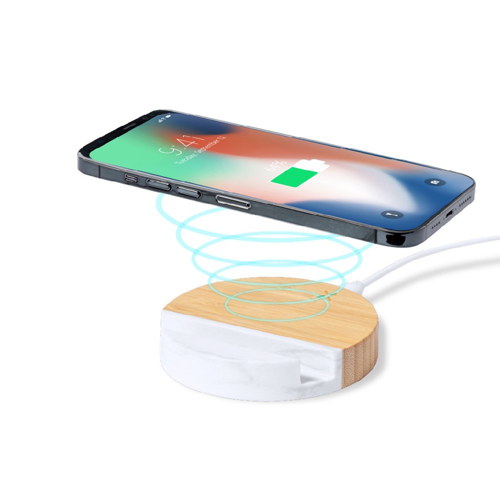 15W draadloze oplader met geïntegreerde smartphonehouder. Rond ontwerp en gemaakt van natuurlijke materialen: bamboestandaard en marmeren uittrekselhouder. Compatibel met apparaten die zijn uitgerust met Qi draadloze oplaadtechnologie. Inclusief Type C oplaadkabel en handleiding in het Engels en Spaans. Gepresenteerd in een individuele kraft design doos.Vervaardigd volgens RoHS-normen en in overeenstemming met de volgende veiligheidseisen:Beveiligingssysteem tegen oververhitting.Beveiligingssysteem tegen overladen.Blokkadesysteem om kortsluiting te voorkomen.