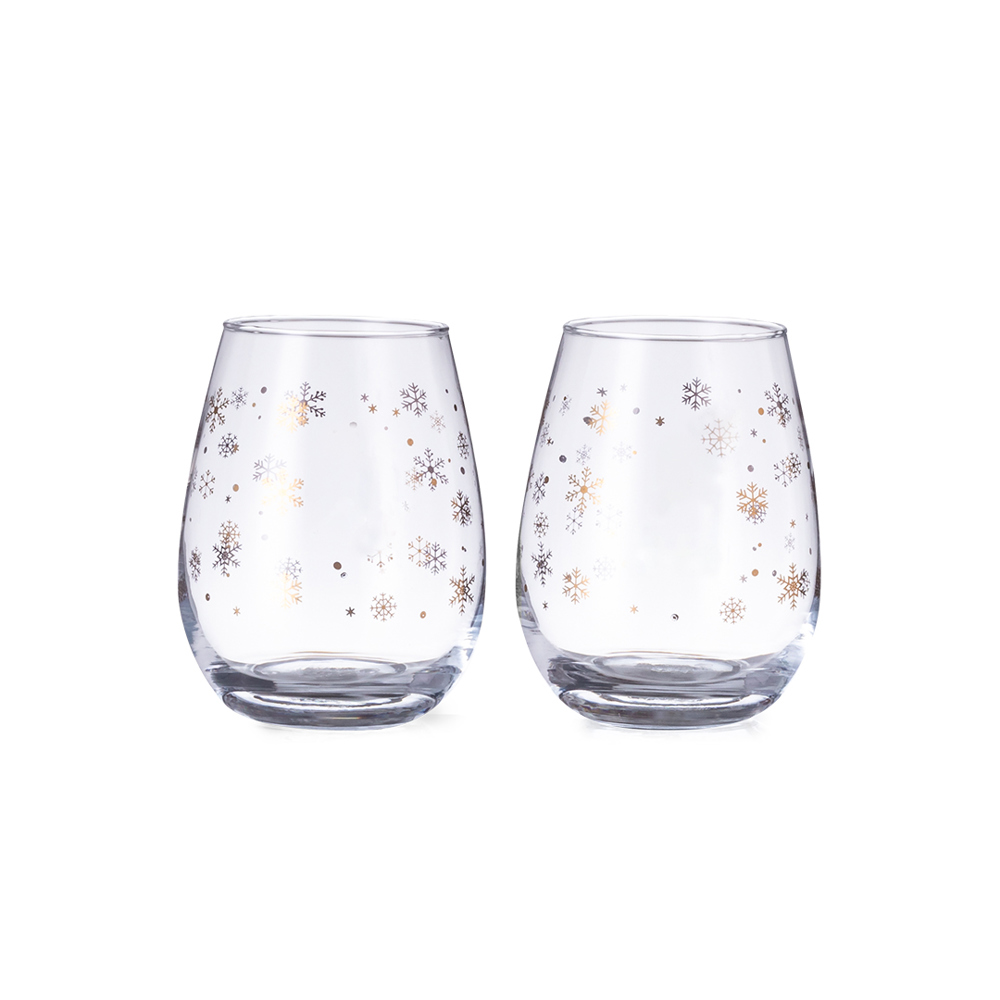 Set van 2 glazen met origineel sneeuwvlokontwerp en een inhoud van 500 ml. Gemaakt van glas, met speciale druk oppervlakte aan de voorkant. Gepresenteerd in een zwarte designdoos met een gouden illustratie.