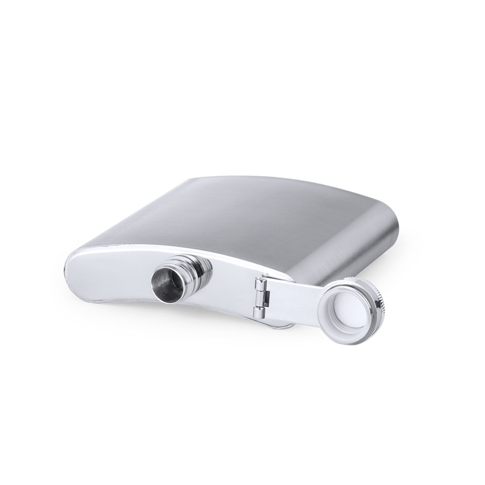 Heupfles met een inhoud van 175 ml, gemaakt van aluminium en verkrijgbaar in een breed scala aan metallic kleuren. Gepresenteerd in een aantrekkelijke individuele doos met kraftpapier.