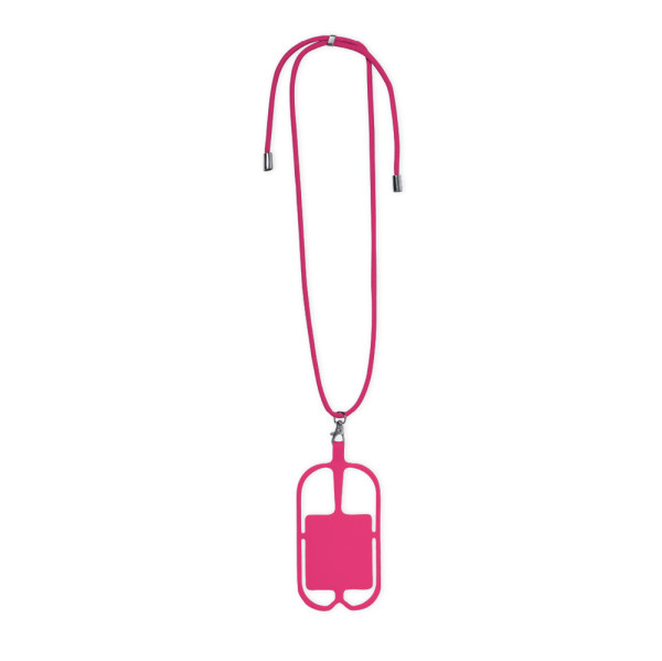 Uniek draagkoord voor smartphone gemaakt van duurzaam polyester en flexibele siliconen. Met draagaccessoire voor alle soorten smartphones, geschikt voor alle schermformaten. Nekversteller en uiteinden in verchroomde afwerking. Verkrijgbaar in een breed scala aan kleuren.