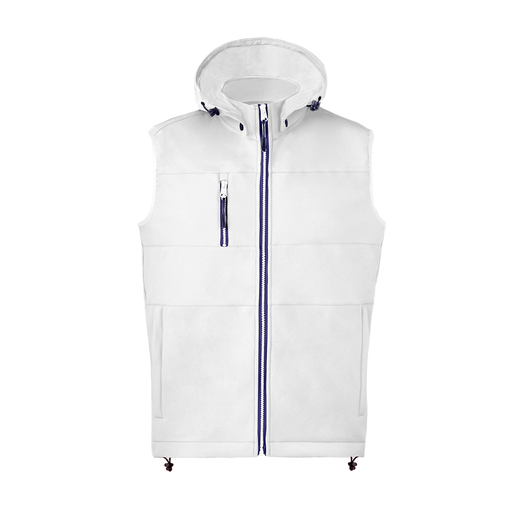 Vest van duurzaam en ademend softshell-materiaal van 300 g/m2. Moderne pasvorm met centrale ritssluiting, steekzakken en praktische borstzak met ritssluiting en contrasterende ritstrekkers. Opstaande kraag met verstelbare en afneembare capuchon. Zoom onderaan met verstelbaar koord. Wind- en waterafstotende softshell buitenkant en warme microfleece voering in contrasterende kleur. Verkrijgbaar in de maten XS, S, M, L, XL, XXL.
