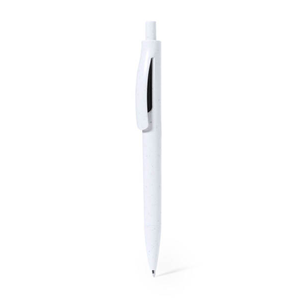 Balpen met drukknopmechanisme gemaakt van gerecycled ABS. Met levendig gekleurd beslag en een gladde, effen witte houder. Gerecycled ABS logo op de bovenkant van de pen.