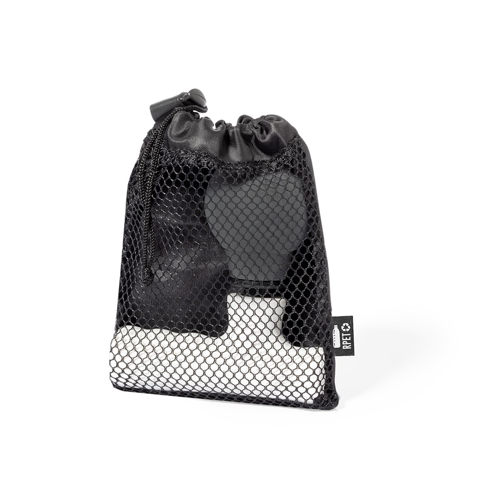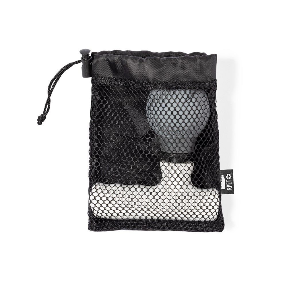 Elektrische stimulator. Helpt spieren te ontspannen, de effecten van training te verlichten, spanning los te laten en het lichaam te revitaliseren. Met twee intensiteitsinstellingen. Langdurige oplaadbare batterij van 800 mAh - USB-kabel inbegrepen-. Met gebruikershandleiding in het Engels en Spaans.Gepresenteerd in een RPET polyester etui met trekkoordsluiting, gemaakt van gerecycled plastic om het hergebruik van plastic afval te bevorderen en bij te dragen aan de duurzaamheid van de planeet. Opvallend RPET-label op het zakje.