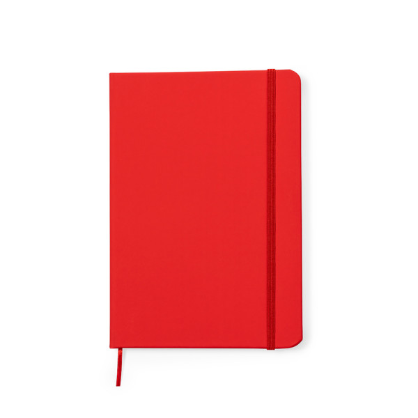 notitieblok met harde kaft van gerecycled kunstleer in verschillende kleuren. Binnenkant met 100 vellen met één streep. Inclusief elastische sluiting in dezelfde kleur. Met badge van gerecycled kunstleer. Gepresenteerd in een individueel gerecycled zakje.Het kunstleer onderscheidt zich door zijn weerstand en elasticiteit. Dit gerecyclede en recyclebare materiaal is een duurzame optie die de vezels redt die tijdens het productieproces worden weggegooid, waardoor er zo min mogelijk materiaal wordt verspild en de impact op het milieu wordt verminderd, terwijl de oorspronkelijke eigenschappen behouden blijven.