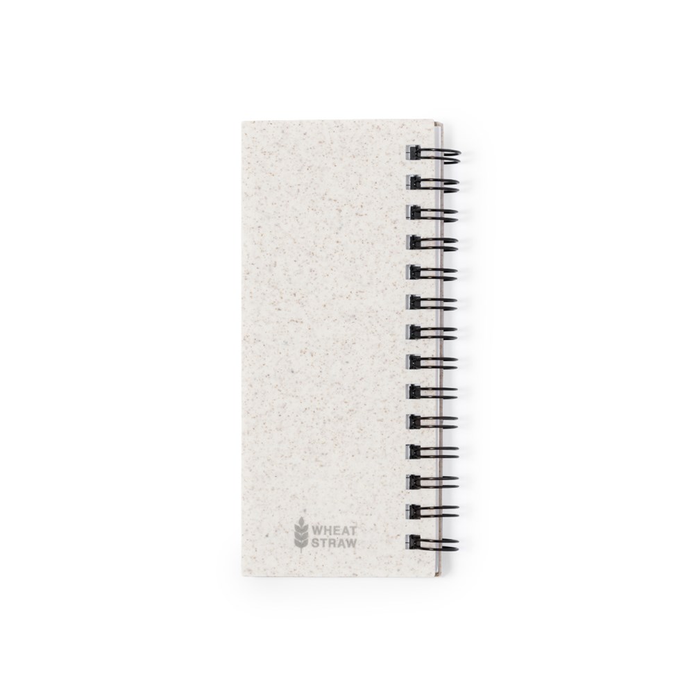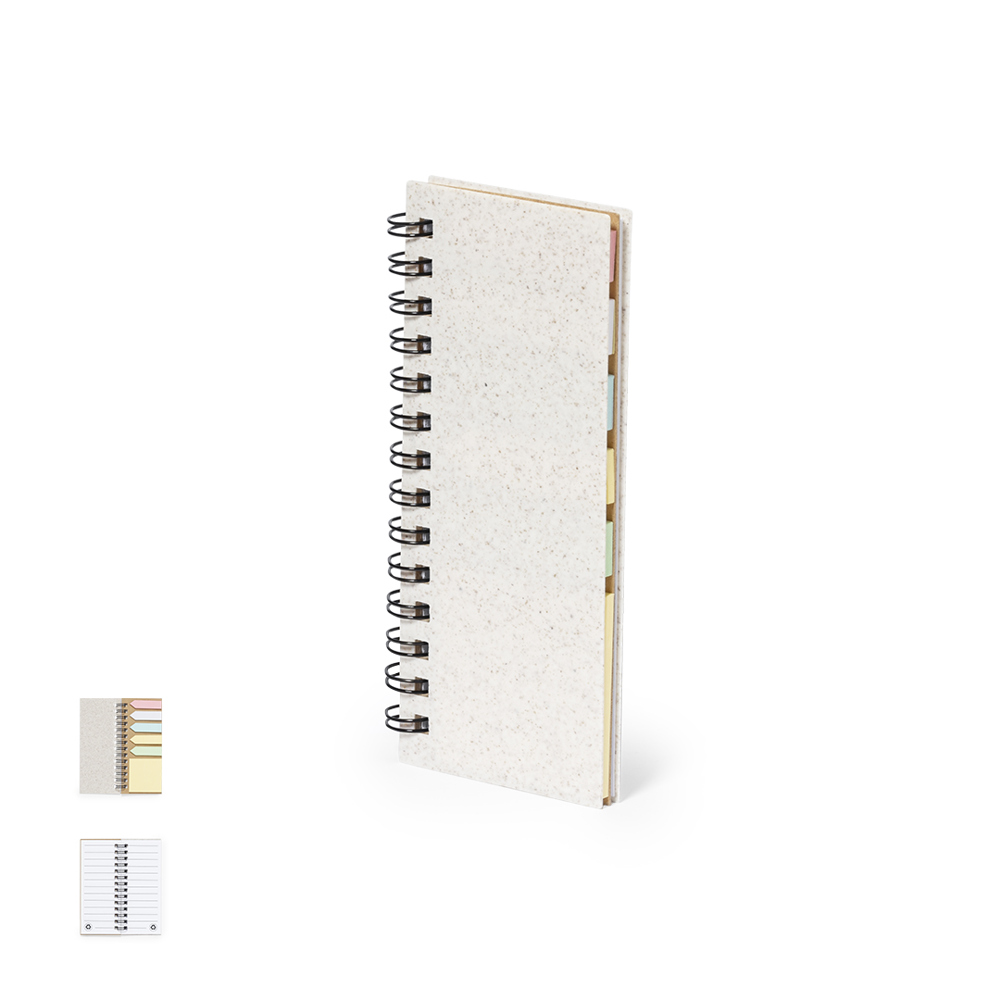 notitieblok met hoezen van tarwestro. Met tarwestro-logo op de achterkant. Inclusief:Witte ringband met 30 vel met single-stripe lay-out en gerecyclede stempel op beide zijden.25 middelgrote plakbriefjes.125 mini-sticky notes in verschillende kleuren. Gemaakt met plantaardige elementen om het gebruik van natuurlijke grondstoffen te bevorderen en de uitstoot van schadelijke stoffen te verminderen.Gepresenteerd in een individueel gerecycled zakje.