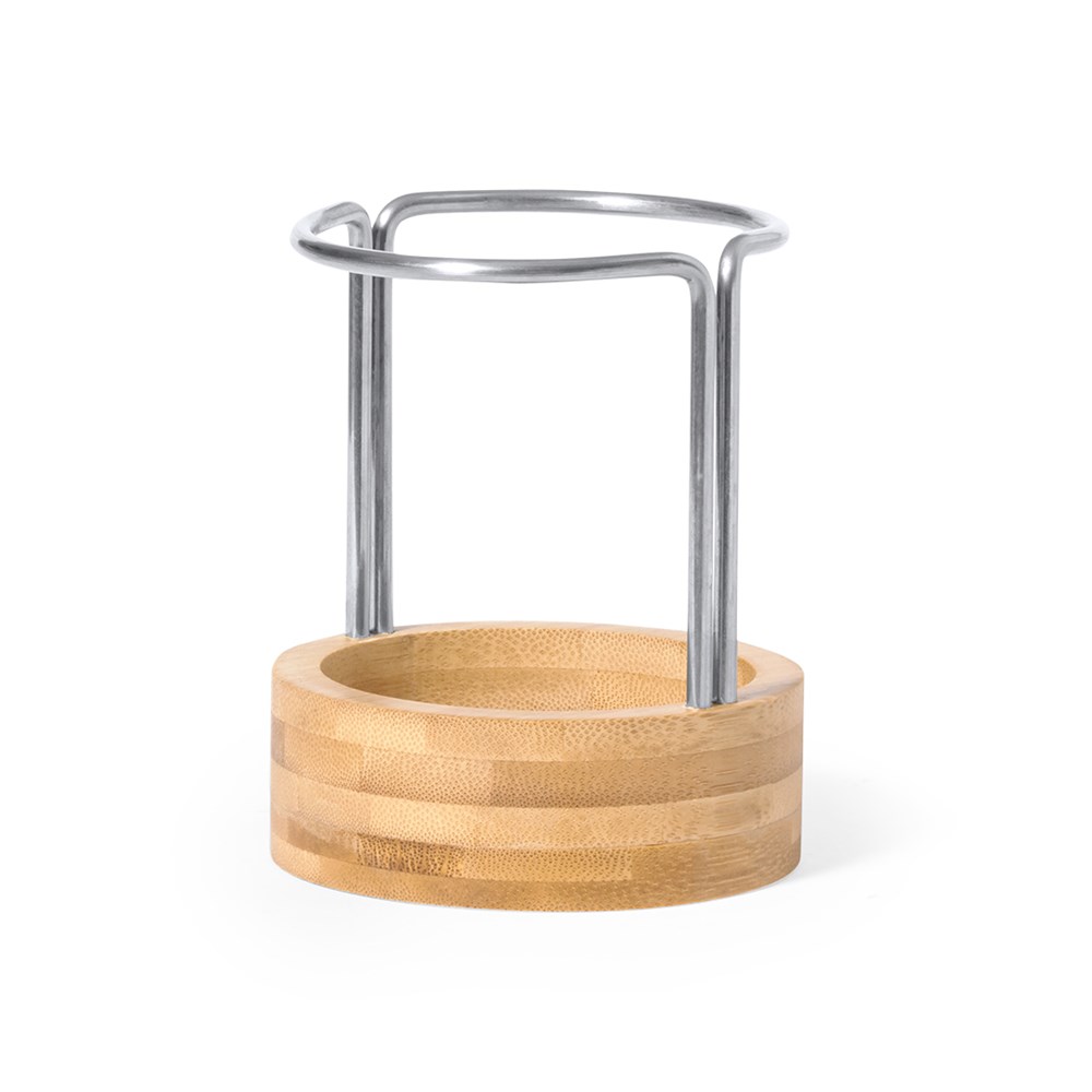 Unieke designhouder gemaakt van gelakt bamboe en resistent roestvrij staal. Gepresenteerd in een individuele kraft designdoos.Materialen zoals bamboe stimuleren het gebruik van natuurlijke grondstoffen en verminderen de uitstoot van verontreinigende stoffen. Bovendien is bamboe afkomstig van een zeer resistente en veelzijdige plant, met snelle groei en regeneratie, wat een uitstekend alternatief is voor het gebruik van traditioneel hout.