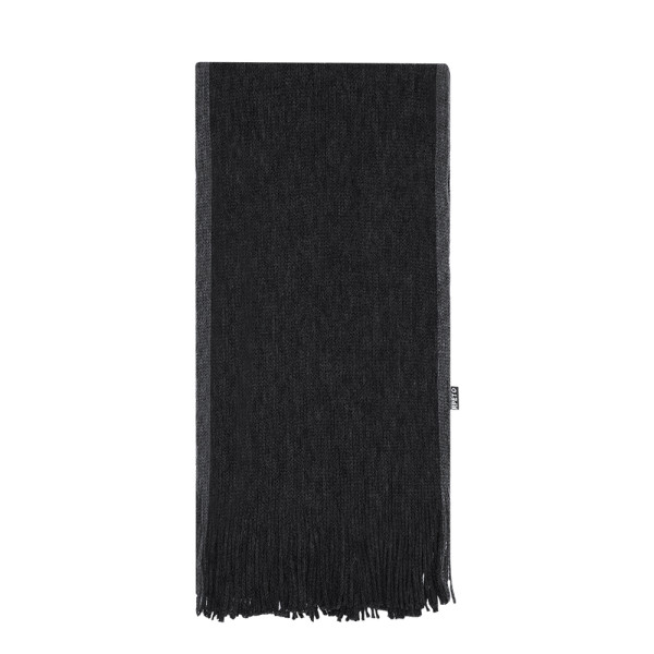 Zachte sjaal gemaakt van warm RPET polyester. Gemaakt in stijlvolle kleuren, met contrasterende randen en een afwerking met franjes. Met RPET-label en gepresenteerd in een elegante zwarte doos met deksel.