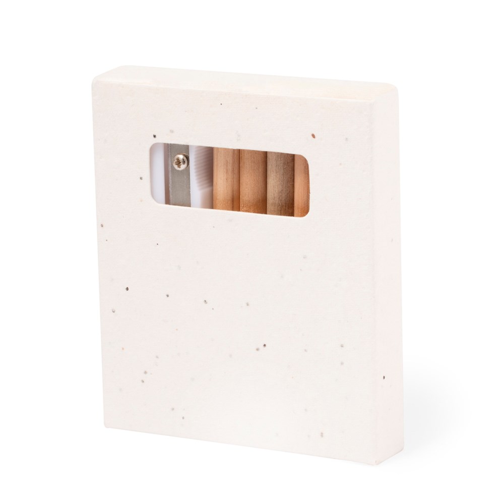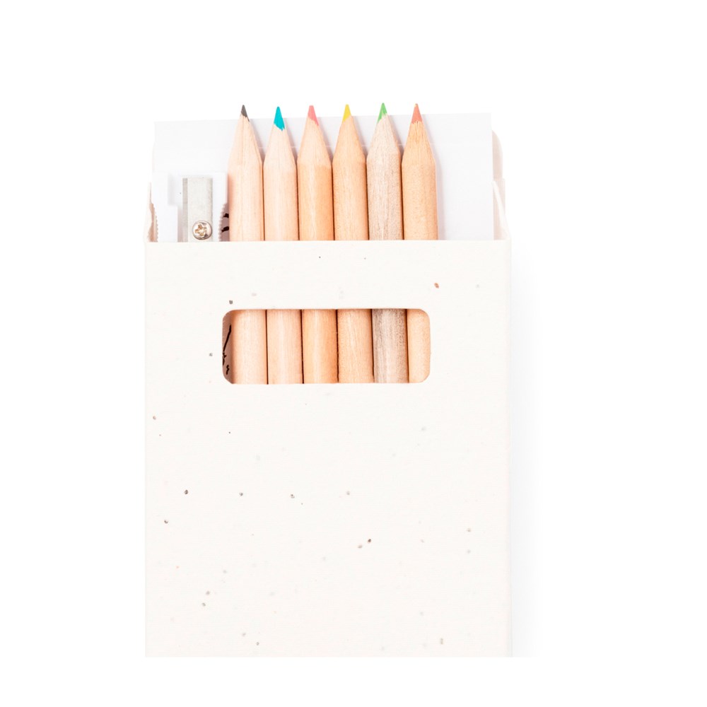 Set van 6 potloden met kleursjablonen en puntenslijper, gepresenteerd in een natuurlijke kartonnen doos met zaadjes. Houten potloden met ronde body en natuurlijke afwerking, met stiften in een breed scala aan kleuren. Inclusief petuniazaden in de doos, waardoor het karton aan het einde van de levensduur plantbaar is. Bloemen in diverse kleuren, met plantinstructies op de achterkant.