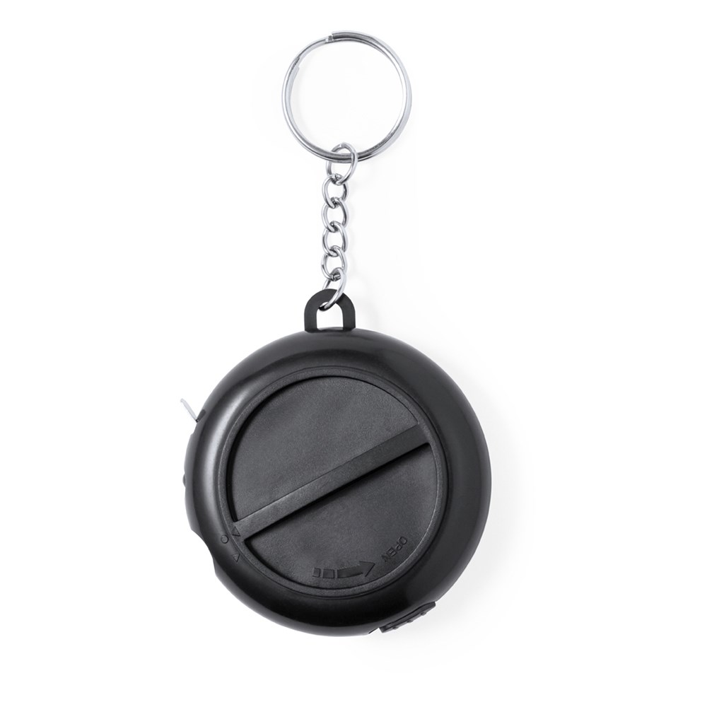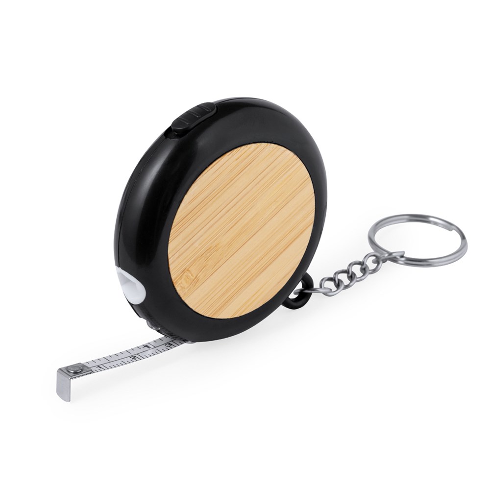 Handige flexometer gemaakt van een bestendige combinatie van bamboe en ABS, met geïntegreerde multitool in de body en dekselsluiting. 4 functies: LED zaklamp (knoopbatterijen inbegrepen), 1 meter meetlint -in centimeters en inches-, en een magnetische schroevendraaierkop met platte en phillips bits. Wordt ook geleverd met een sleutelhanger en wordt individueel gepresenteerd in een kraft doosje.