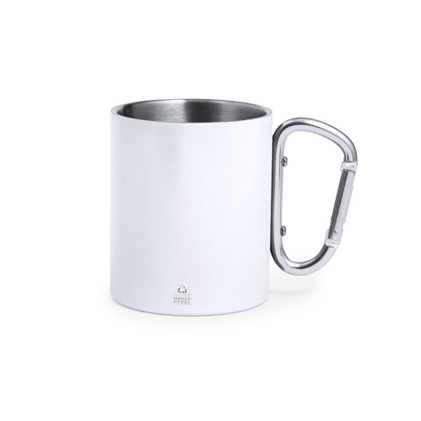 Gerecycled roestvrijstalen dubbelwandige mok met een inhoud van 300 ml. Met karabijnhaak voor...meer