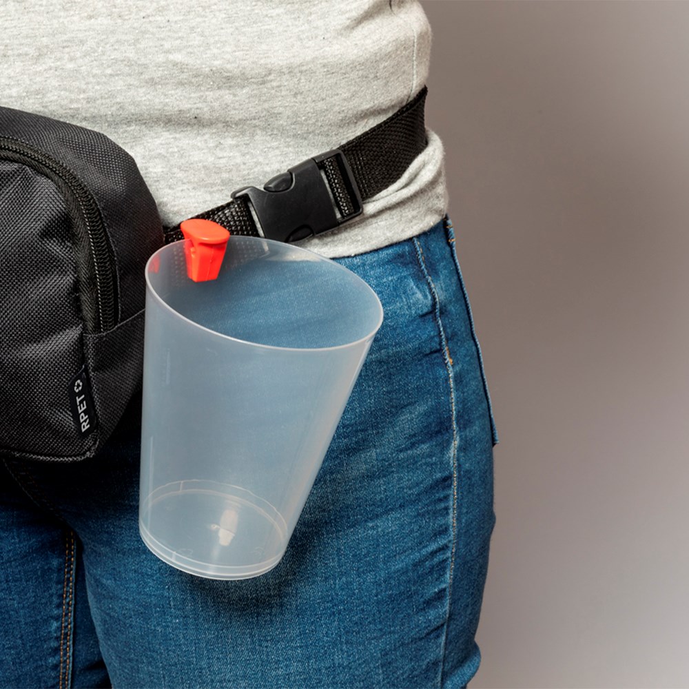 Praktische bekerhouderclip van resistent ABS. Eenvoudig in gebruik en aanpasbaar aan elke plastic beker. Inclusief een plat oppervlak voor branding. Verkrijgbaar in een breed scala aan kleuren.