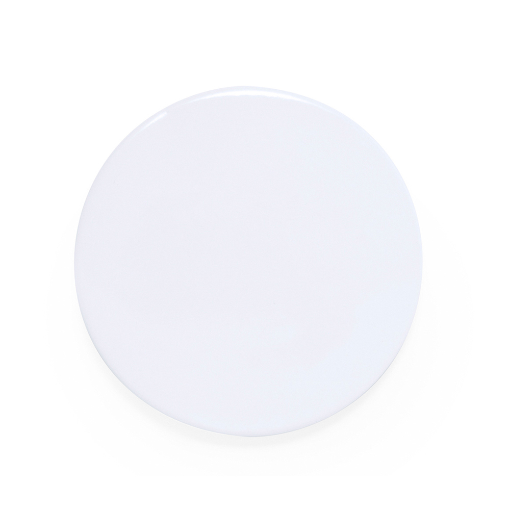 Schitterende witte pin in groot formaat. Een veelzijdig accessoire voor het bedrukken van een breed scala aan ontwerpen en met een veiligheidsspeld aan de achterkant.