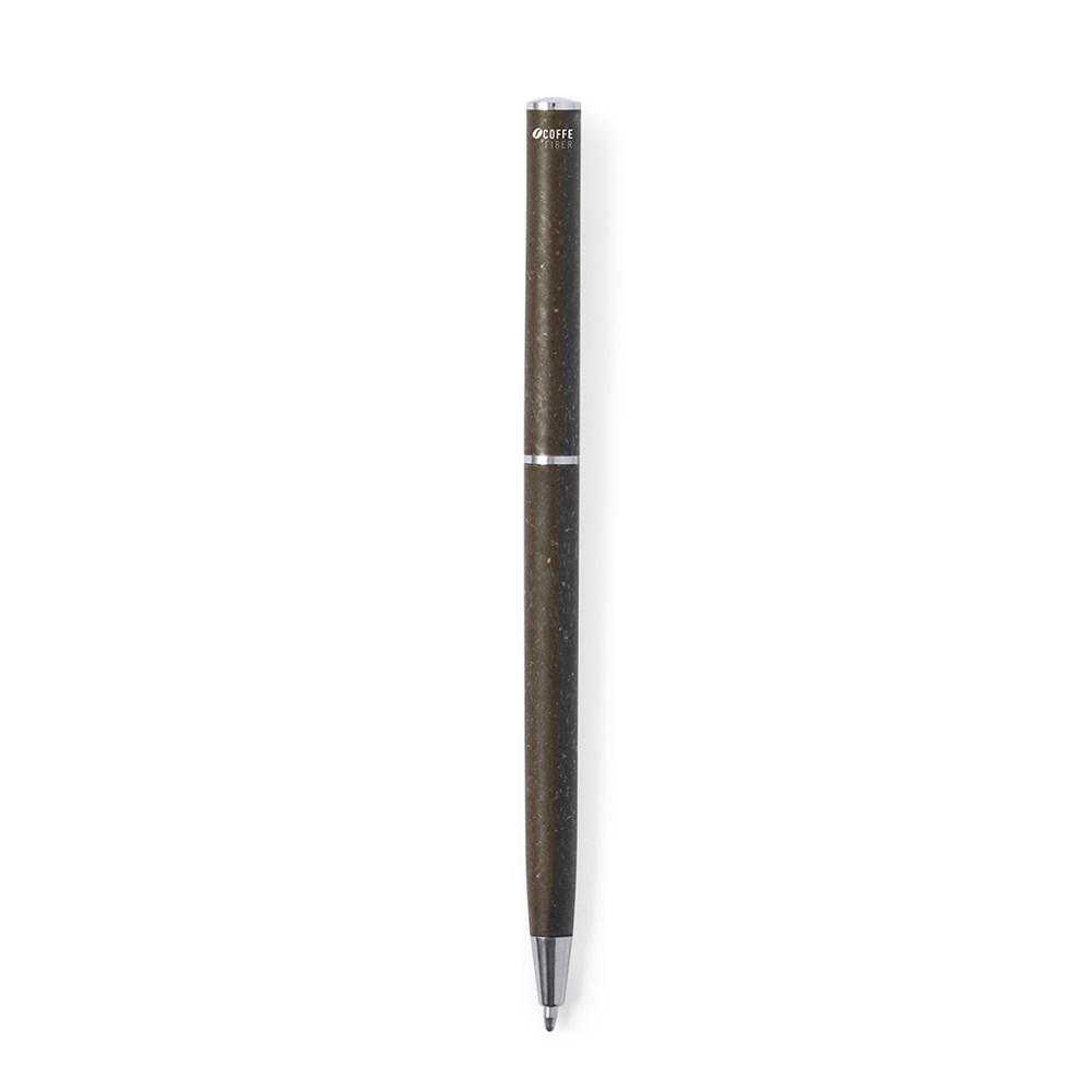 Balpen met koffievezelhouder, metalen clip en verchroomde fittingen. Draaimechanisme en blauwe inkt. Met logo koffievezel en verkrijgbaar in naturel kleur. Koffievezel is een circulaire oplossing die wordt verkregen door het gebruik van afval dat wordt geproduceerd bij de koffieproductie. Een duurzaam alternatief dat de vermindering van het gebruik van plastic bevordert, energie bespaart in het productieproces en bijdraagt aan het behoud van het milieu.