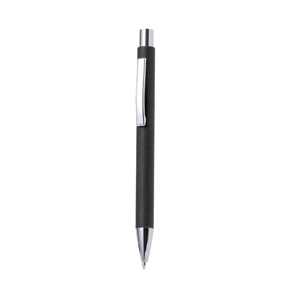 Stijlvolle balpen met drukknop, gerecycled papieren houder en glanzend zilvermetallic beslag. Blauwe inkt en verkrijgbaar in een groot aantal kleuren.