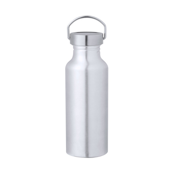 Fles met een inhoud van 650 ml, gemaakt van gerecycled aluminium met een glanzende afwerking. Met originele bijpassende zilveren schroefdop en geïntegreerd handvat. Verkrijgbaar in een reeks stijlvolle kleuren. Met logo van gerecycled aluminium, BPA-vrij en gepresenteerd in een individuele kraft-designdoos.Gerecycled aluminium is een materiaal met vrijwel oneindige recyclingmogelijkheden, waarbij het zijn oorspronkelijke eigenschappen behoudt en tijdens dit proces minder energie verbruikt.GRS-certificering (Global Recycled Standard), die de gerecyclede oorsprong garandeert van het materiaal dat wordt gebruikt om het product te vervaardigen."