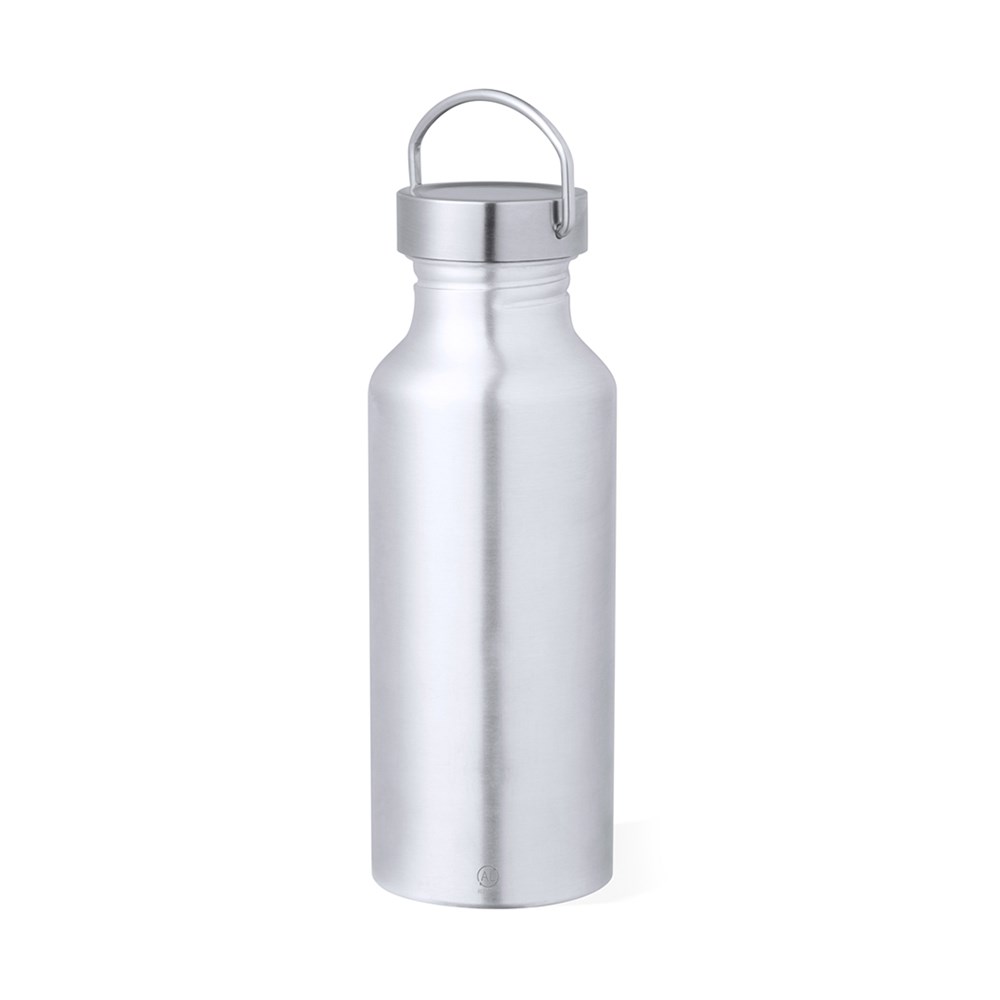 Fles met een inhoud van 650 ml, gemaakt van gerecycled aluminium met een glanzende afwerking. Met originele bijpassende zilveren schroefdop en geïntegreerd handvat. Verkrijgbaar in een reeks stijlvolle kleuren. Met logo van gerecycled aluminium, BPA-vrij en gepresenteerd in een individuele kraft-designdoos.Gerecycled aluminium is een materiaal met vrijwel oneindige recyclingmogelijkheden, waarbij het zijn oorspronkelijke eigenschappen behoudt en tijdens dit proces minder energie verbruikt.GRS-certificering (Global Recycled Standard), die de gerecyclede oorsprong garandeert van het materiaal dat wordt gebruikt om het product te vervaardigen."