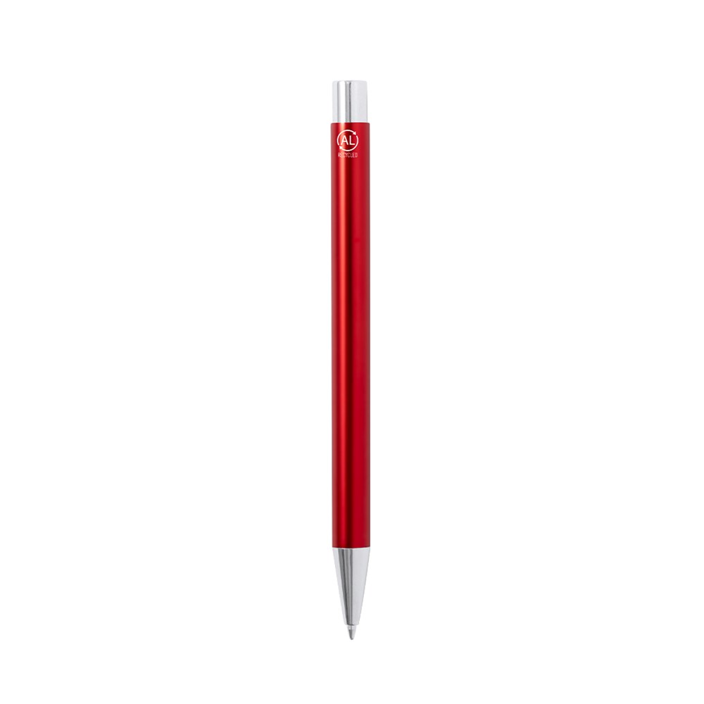 Stijlvolle balpen van gerecycled aluminium met drukknopmechanisme. Duurzame gerecycled aluminium houder met glanzende afwerking in verschillende kleuren, in blauwe inkt en met jumbo inktpatroon. Metalen clip en gepresenteerd in een individueel gerecycled zakje. Gerecycled aluminium heeft zijn oorsprong in het bijna oneindige hergebruik van een van de materialen met het grootste recyclebaarheidspotentieel, met behoud van de kwaliteit van het resulterende product. Deze eigenschap maakt het tot een milieuvriendelijk materiaal van gerecyclede oorsprong, dat gemakkelijk te recyclen is. Bovendien kunnen nieuwe materialen en grondstoffen worden verkregen uit verwerkings- en afvalprocessen, waardoor onder andere minder energie wordt verbruikt. GRS-certificering (Global Recycled Standard), die de gerecyclede herkomst garandeert van het materiaal dat wordt gebruikt om het product te vervaardigen.