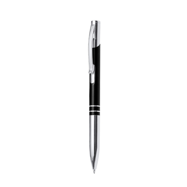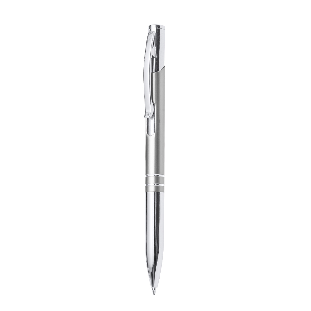 Originele balpen met drukknopmechanisme, in een elegant tweekleurig ontwerp. Aluminium gestanste houder met gladde afwerking in verschillende kleuren. Originele clip, ringen en punt in zilverkleurige afwerking. Blauwe inkt.