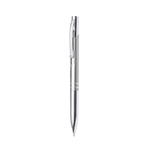 Originele balpen met drukknopmechanisme, in een elegant tweekleurig ontwerp. Aluminium gestanste houder met gladde afwerking in verschillende kleuren. Originele clip, ringen en punt in zilverkleurige afwerking. Blauwe inkt.