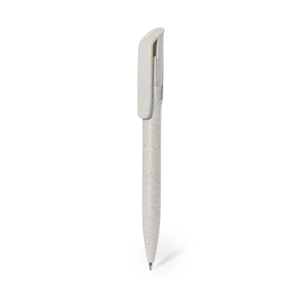 Praktische balpen gemaakt van tarwestro. Drukknopmechanisme, in blauwe inkt en met Wheat Straw-logo op de bovenkant van de balpen. Met clip in verschillende kleuren en natuurlijke kleur houder. Tarwestro bevordert het gebruik van natuurlijke grondstoffen en vermindert zo de uitstoot van vervuilende stoffen.
