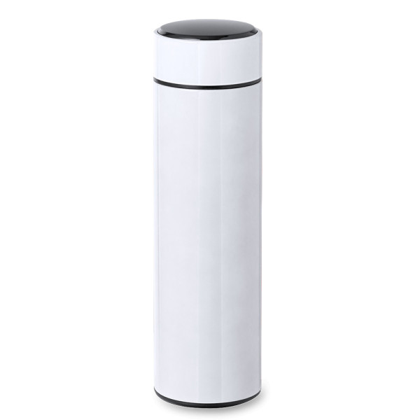 Hoogwaardige, dubbelwandige thermische fles met een capaciteit van 450 ml en voelbare temperatuurmeter geïntegreerd in de dop. Gemaakt van roestvrij staal, dat uitzonderlijke sterkte en duurzaamheid biedt, en inclusief roestvrijstalen dop met geïntegreerde, BPA-vrije zetgroep. Werkt op batterijen (knoopcel meegeleverd), met handleiding in het Engels en Spaans. Verkrijgbaar in een breed scala aan kleuren en gepresenteerd in een aantrekkelijke kraft-designdoos.