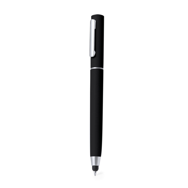 Handige balpen met draaimechanisme en schoonmaakaccessoires bovenaan de houder. Bevat een borstel en een metalen punt, beschermd door een kap. Met metalen clip en in blauwe inkt. Verkrijgbaar in verschillende kleuren en individueel gepresenteerd in een kraftdoos.
