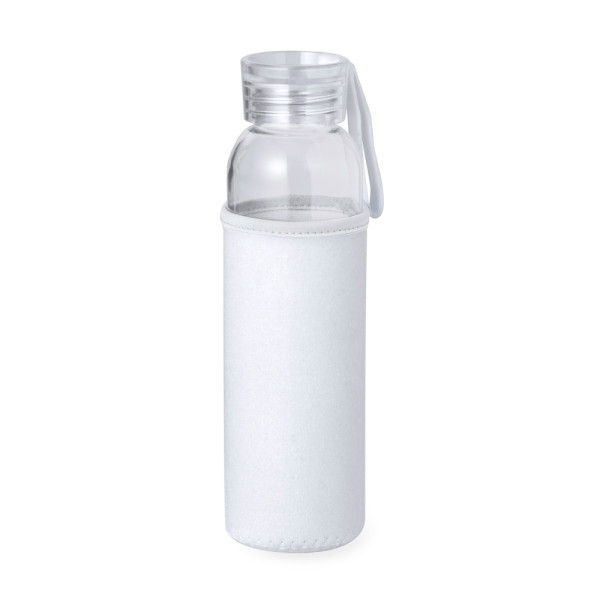 Fles met een inhoud van 500 ml. Glazen behuizing met schroefdop en praktisch siliconen handvat voor eenvoudig dragen. Geleverd met bijpassende softshell hoes. Verkrijgbaar in een breed scala aan kleuren en gepresenteerd in een individuele doos met een aantrekkelijk kraftontwerp.
