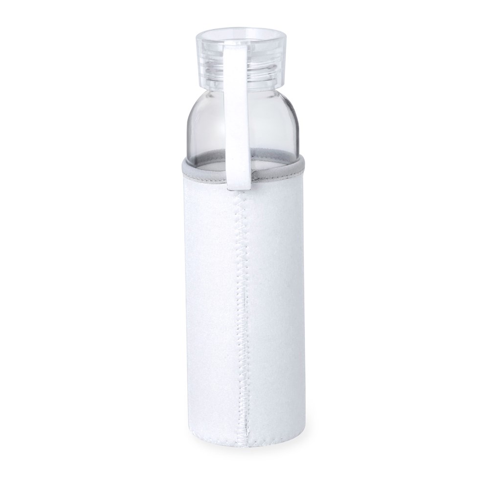 Fles met een inhoud van 500 ml. Glazen behuizing met schroefdop en praktisch siliconen handvat voor eenvoudig dragen. Geleverd met bijpassende softshell hoes. Verkrijgbaar in een breed scala aan kleuren en gepresenteerd in een individuele doos met een aantrekkelijk kraftontwerp.