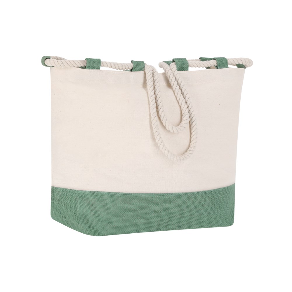 Tas gemaakt van sterk 280g/m2 katoen. Gestikte afwerking, met kruisje en 50 cm lange versterkte handvatten in touwstijl. Verkrijgbaar in een breed scala aan tweekleurige kleuren, met een weerstand tot 10 kg in gewicht.