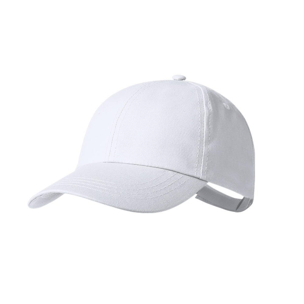 Comfortabele pet met 6 panelen van katoen. Met geborduurde gaten voor ventilatie en een praktische verstelbare klittenbandsluiting. Verkrijgbaar in een breed scala aan kleuren.