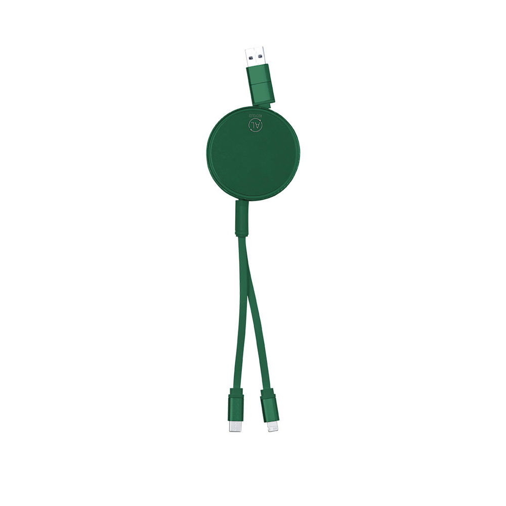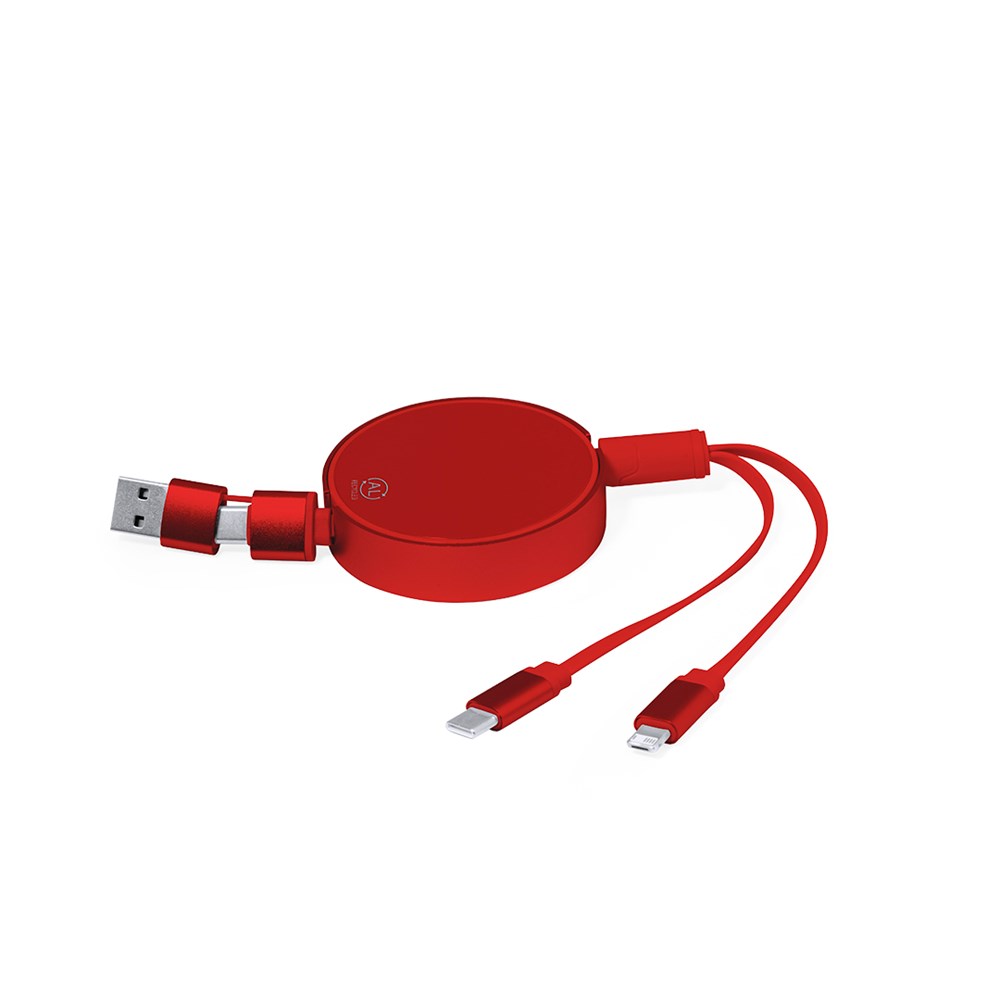 "Verlengbare laad- en synchronisatiekabel, geschikt voor dataoverdracht en gemaakt van gerecycled aluminium met metallic afwerking. Centrale behuizing met groot merkoppervlak, speciaal ontworpen voor lasergraveren. Verkrijgbaar in een groot aantal kleuren, met bijpassende kabels. Type C en USB-ingang aansluitingen, met Lightning-, Micro USB- en Type C-uitgangen. 5 V DC 2,4 A. Verpakt in een individuele kraft-designzak.Gerecycled aluminium is een materiaal met vrijwel oneindige recyclingmogelijkheden, waarbij het zijn oorspronkelijke eigenschappen behoudt en tijdens dit proces minder energie verbruikt.GRS-certificering (Global Recycled Standard), die de gerecyclede oorsprong garandeert van het materiaal dat wordt gebruikt om het product te vervaardigen."