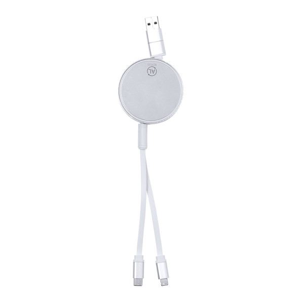 "Verlengbare laad- en synchronisatiekabel, geschikt voor dataoverdracht en gemaakt van gerecycled aluminium met metallic afwerking. Centrale behuizing met groot merkoppervlak, speciaal ontworpen voor lasergraveren. Verkrijgbaar in een groot aantal kleuren, met bijpassende kabels. Type C en USB-ingang aansluitingen, met Lightning-, Micro USB- en Type C-uitgangen. 5 V DC 2,4 A. Verpakt in een individuele kraft-designzak.Gerecycled aluminium is een materiaal met vrijwel oneindige recyclingmogelijkheden, waarbij het zijn oorspronkelijke eigenschappen behoudt en tijdens dit proces minder energie verbruikt.GRS-certificering (Global Recycled Standard), die de gerecyclede oorsprong garandeert van het materiaal dat wordt gebruikt om het product te vervaardigen."