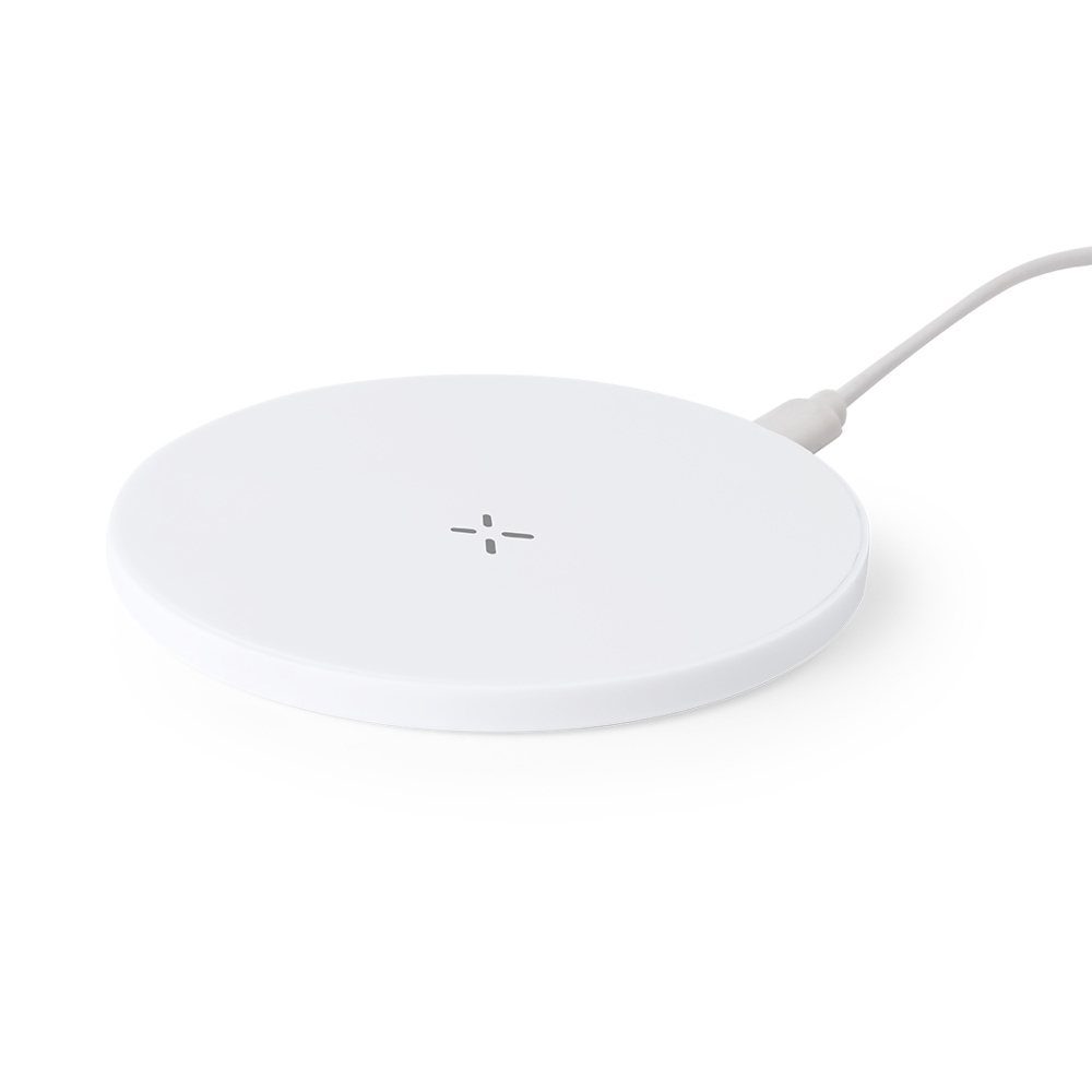 Draadloze oplader 15W in rond ontwerp gemaakt van RABS. Compatibel met apparaten uitgerust met Qi draadloze oplaadtechnologie. Antislipbasis, inclusief Type C-oplaadkabel. Gepresenteerd in een individuele kraftdesigndoos, met handleiding in het Engels en Spaans.