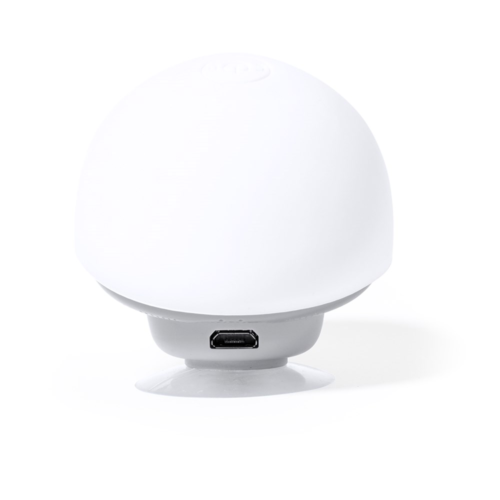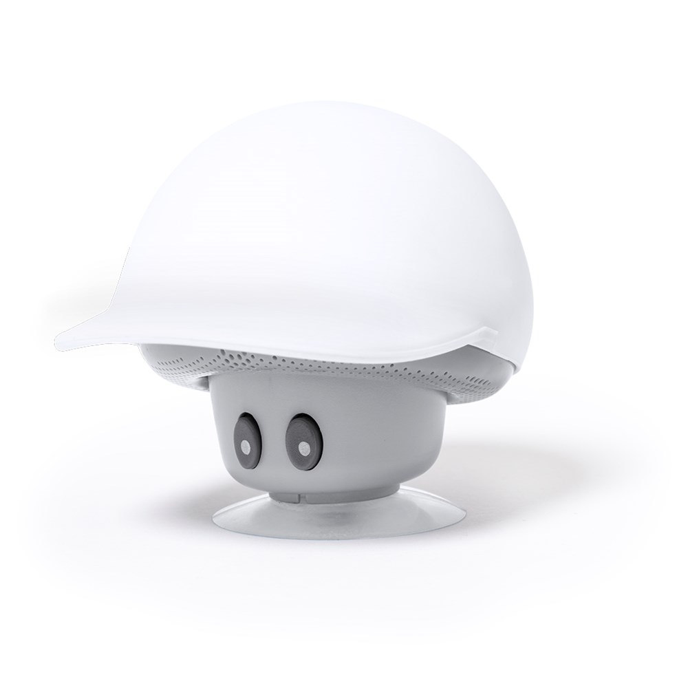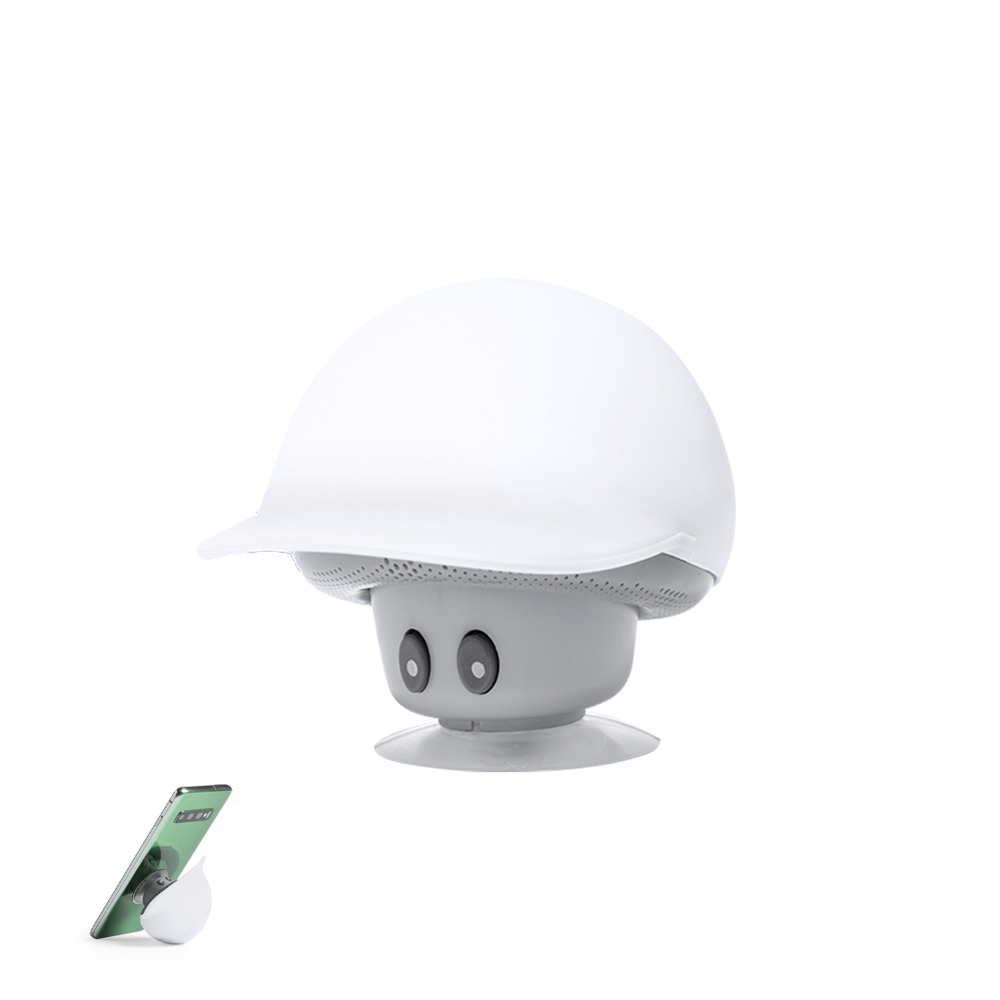 Luidspreker in origineel paddestoeldesign met kap, met houder voor mobiele telefoon. Bluetooth® 5.0-connectiviteit, met 3 W vermogen en handsfree modus. Behuizing met zacht rubberen afwerking en zuignap voor houderfunctie. Inclusief micro-USB-kabel en gepresenteerd in een aantrekkelijke kraft-designdoos. Handleiding beschikbaar in het Engels en Spaans.