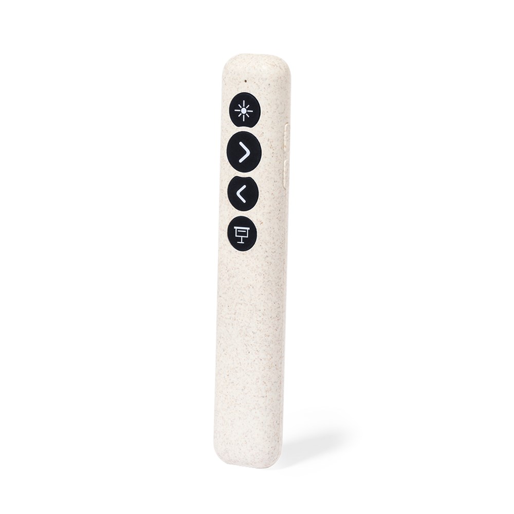 Stijlvolle klasse 2 laserpointer met USB-aansluiting gemaakt van tarwestro. Speciaal ontworpen voor PowerPoint- en Keynote-presentaties, met activeringsknop aan de zijkant, vooruit-, pauze- en terugspoelknoppen. Body speciaal ontworpen voor tampondruk van branding. Batterijvoeding: 1xAAA inbegrepen. Gepresenteerd in een kraft-designdoos, met handleiding in het Engels en Spaans. Tarwestro bevordert het gebruik van natuurlijke grondstoffen, waardoor de uitstoot van verontreinigende stoffen wordt verminderd.