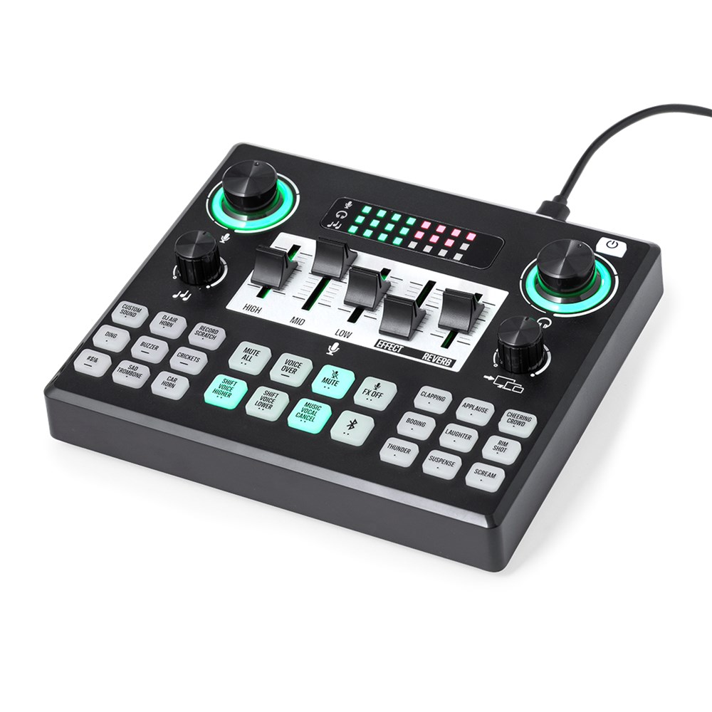 Fantastische mixer, een samensmelting van stijl en functionaliteit die elke sessie naar een hoger niveau tilt. Het biedt totale controle, met een groot aantal faders en vermogensmeters met achtergrondverlichting die, gecombineerd met een intuïtieve gebruikersinterface, het mogelijk maken verbluffende mixen te creëren. Aangesloten op de computer via een USB-kabel, met voldoende in- en uitgangen voor het tegelijkertijd aansluiten van meerdere apparaten. Met Bluetooth®-verbinding en effectenrek, vooraf opgenomen en aanpasbaar. Gepresenteerd in een kraft-designdoos, met handleiding in het Engels en Spaans.