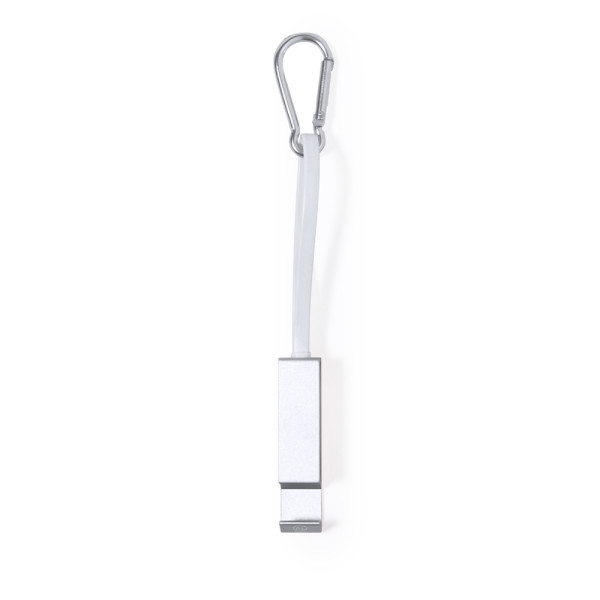Multifunctionele laadkabel, gemaakt van gerecycled aluminium en met een intelligent ontwerp voor het handig opbergen van de laadkabels, maar ook voor gemakkelijk transport. Inclusief bijpassende karabijnhaak en smartphonehouder, met Type C aansluiting (in- en uitgang) en dubbele Micro USB / Lightning-verbinding. Verkrijgbaar in verschillende metallic kleuren en met logo van gerecycled aluminium. Gepresenteerd in een individuele gerecyclede tas. Gerecycled aluminium is een materiaal met vrijwel oneindige recyclingmogelijkheden, waarbij het zijn oorspronkelijke eigenschappen behoudt en tijdens dit proces minder energie verbruikt. GRS-certificering (Global Recycled Standard), die de gerecyclede oorsprong garandeert van het materiaal dat wordt gebruikt om het product te vervaardigen.