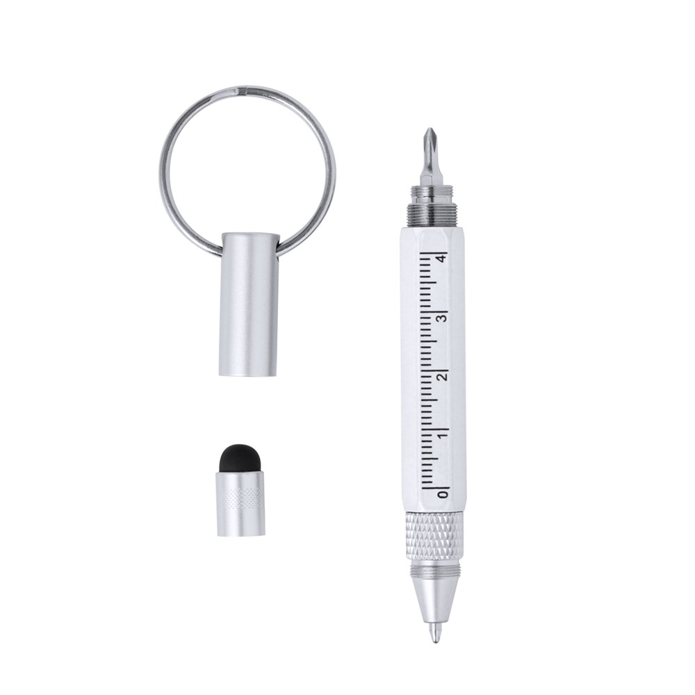 Handige multifunctionele balpen gemaakt van aluminium. Met 5 verschillende functies: balpen. ruer, wijzer en platte/phillips-schroevendraaier. Verkrijgbaar in een breed scala aan kleuren en gepresenteerd in een individuele gerecyclede zak.