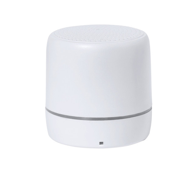 Compacte Bluetooth®-luidspreker met LED-achtergrondverlichting aan de binnenkant. Buitenoppervlak speciaal ontworpen voor lasergraveren om het merklogo te verlichten. Verkrijgbaar in verschillende kleuren met gladde afwerking en Bluetooth® 5.0-verbinding, met 3 W vermogen, handsfree-functie en antislip rubberen voetjes aan de basis. Compatibel met iOS en Android, inclusief Type C-oplaadkabel en verpakt in een aantrekkelijke kraftdoos. Handleiding beschikbaar in het Engels en Spaans.
