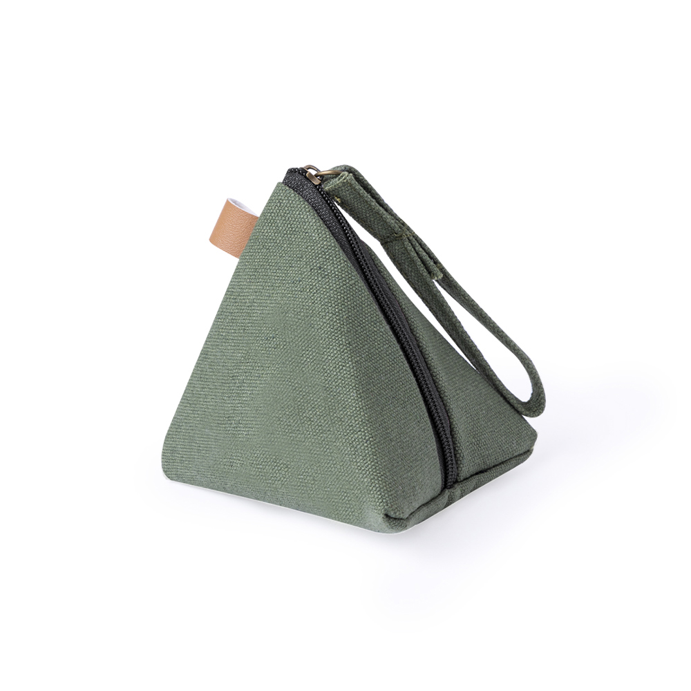 Echte piramidevormige portemonnee, gemaakt van duurzaam canvas. Zak met ritssluiting en lange draagriem. Verkrijgbaar in verschillende kleuren.