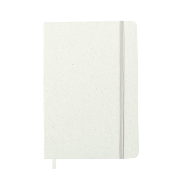 A5 notitieblok met harde kaft gemaakt van fruit. Binnenkant met 80 vellen met enkele streepindeling, met bijpassende bladwijzer en elastische band. Verkrijgbaar in verschillende kleuren van kraftafwerking. Inclusief Fruit Paper-logo op de achterkant. Gepresenteerd in een individuele gerecyclede tas. Door afval en reststromen uit de agrifoodindustrie te mengen met andere gerecyclede materialen ontstaat een 100% duurzaam papier: fruitpapier. Het aanmoedigen van het gebruik ervan is een bijdrage aan het hergebruik van materialen en aan een grotere betrokkenheid bij het milieu.