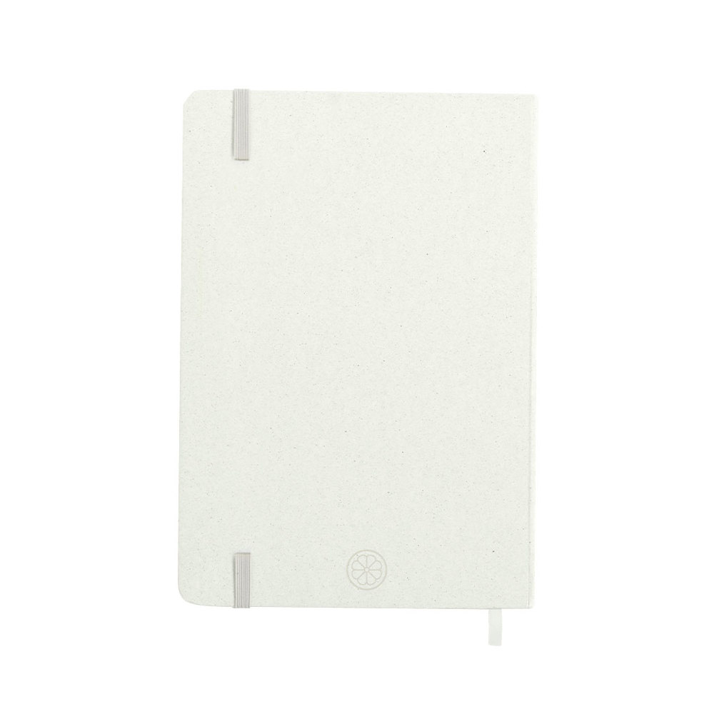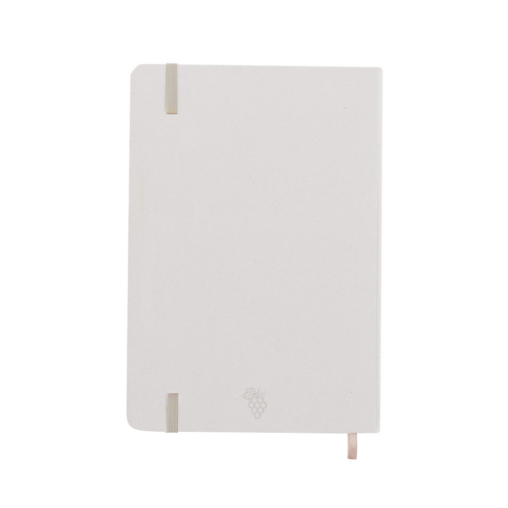 A5 notitieblok met harde kaft gemaakt van fruit. Binnenkant met 80 vellen met enkele streepindeling, met bijpassende bladwijzer en elastische band. Verkrijgbaar in verschillende kleuren van kraftafwerking. Inclusief Fruit Paper-logo op de achterkant. Gepresenteerd in een individuele gerecyclede tas.
