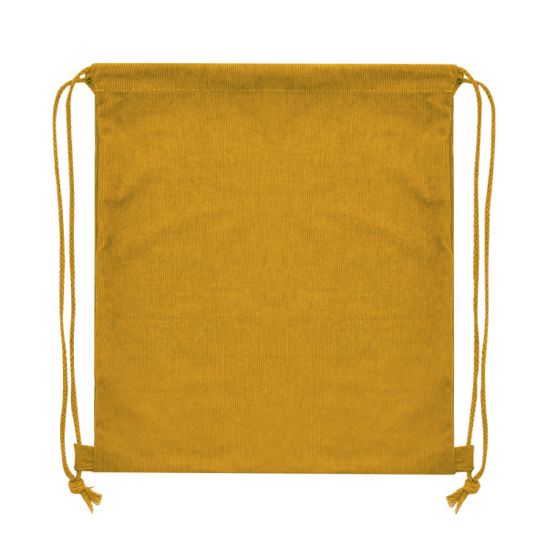 Rugzak met trekkoord gemaakt van duurzaam polyester corduroy. Gestikte afwerking, met bijpassende touwtjes en zijverstevigingen. Verkrijgbaar in een breed scala aan kleuren.