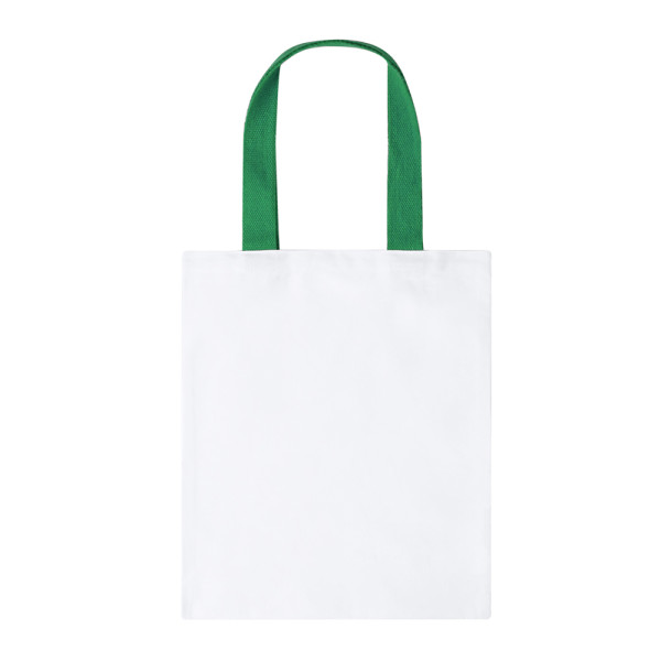 Canvas tas 230g/m2. In witte kleur, met resistente gestikte afwerking en versterkte handvatten in verschillende kleuren, 60 cm lang.