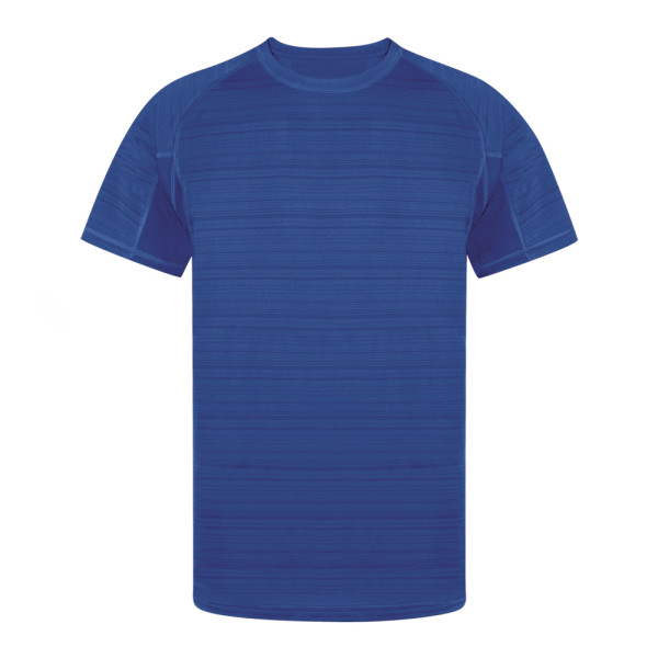 Unisex technisch T-shirt met origineel gestreept design, in combinatie met ademende micro-geperforeerde stof in oksels en zijkanten. Gemaakt van zacht 100% polyester 135g/m2 materiaal, een zeer comfortabel, licht en ademend T-shirt, ideaal voor sport en ook voor dagelijks gebruik. Moderne snit, raglanmouwen en ronde hals, met dubbel gestikte zoom en dubbele stoffen mouwen voor grotere duurzaamheid en weerstand tegen intensief gebruik. Verkrijgbaar in de maten XS, S, M, L, XL en XXL.