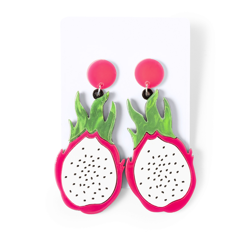 Frisse en originele collectie fruitoorbellen. Boeiend en kleurrijk, in de vorm van aardbeien, pitaya's, appels, watermeloenen of citroenen, en maakt een stijlstatement. Gemaakt met oog voor detail en clipsluiting. Gepresenteerd in wit karton en in een individuele tas.