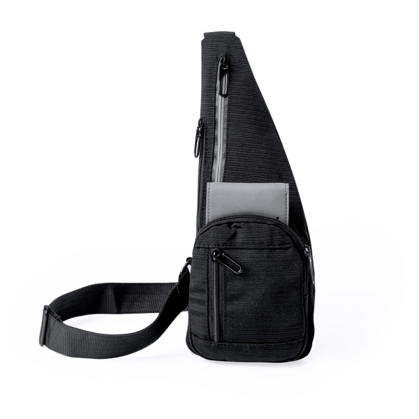Deze 300D polyester koerierstas biedt meerdere vakken voor een effectieve organisatie. Twee hoofdzakken bevinden zich aan de voor- en zijkant, samen met twee extra zakken aan de voor- en achterkant. De tas is voorzien van een reflecterende strip op de middelste zak voor zichtbaarheid. Per stuk verpakt in een gerecyclede tas.